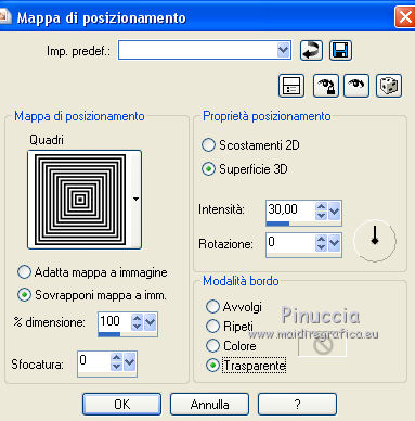 16. Effetti>Effetti di distorsione>Mappa di posizionamento, con i settaggi precedenti.