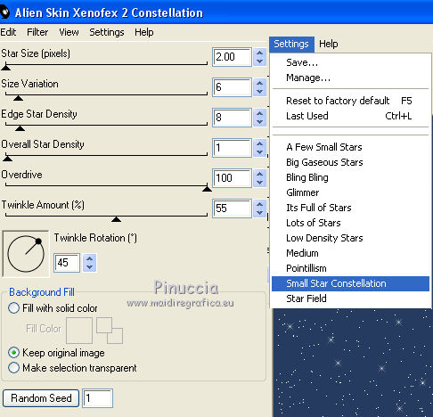 3. Effetti>Plugins>Alien Skin Xenofex 2 - Constellation.