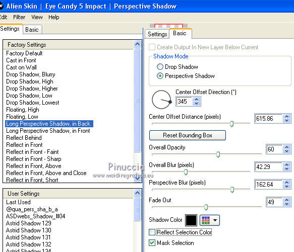 14. Effetti>Plugins>Alien Skin Eye Candy 5 Impact - Perspective Shadow.