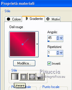 1. Passa il colore di primo piano a Gradiente, e seleziona il gradiente Oeil rouge, stile Lineare.