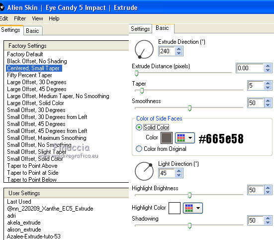 21. Effetti>Plugins>Alien Skin Eye Candy 5 Impact - Extrude.