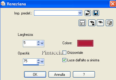 Effetti>Effetti di trama>Veneziana, con i settaggi precedenti.