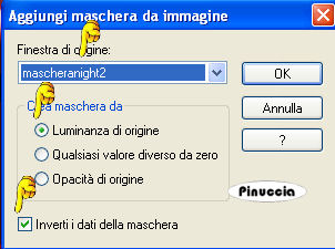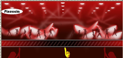 qui puoi trovare qualche risposta ai tuoi dubbi. Se l'argomento che ti interessa non è presente, ti prego di segnalarmelo. Occorrente: Materiale: qui Animation Shop qui Apri il font e minimizzalo. Lo avrai immediatamente a disposizione del tuo strumento Testo. Ricordati di salvare spesso. Apri una nuova immagine trasparente 400 x 400 pixels e riempila con #310800.Parti creando la tua maschera. Apri una nuova immagine trasparente 410 x 110 pixels. Imposta nero come colore di primo piano e bianco come colore di sfondo. Passa il colore di primo piano a gradiente di primo piano/sfondo, con i seguenti settaggi, trame non selezionato (manina rossa). ![]() Riempi l'immagine con il gradiente.Salva l'immagine come maschera nella tua cartella tag. Puoi anche esportare la maschera in formato .jpg permanentemente nella tua cartella maschere di PSP. Apri una nuova immagine trasparente 410 x 110 pixels e riempila con il colore #b50e0e.Livelli>Nuovo livello maschera>Da immagine. ![]() Cerca la maschera che hai appena salvato e clicca applica. ![]() Livelli>Unisci>Unisci gruppo. Modifica>Copia. Ritorna alla tua tag e vai a Modifica>Incolla>Incolla come nuovo livello. Muovi questo livello tutto in alto. Apri una nuova immagine trasparente 410 x 90 pixels e riempila con #720000.Modifica>Copia. Torna al tuo lavoro e vai a Modifica>Incolla>Incolla come nuovo livello. Sposta questo livello tutto in basso. Se tutto è andato bene, dovresti avere questo: ![]() Apri il file MD-NC-banner.psp e vai a Modifica>Copia. Torna al tuo lavoro e vai a Modifica>Incolla>Incolla come nuovo livello. Spostalo sopra il bordo del pavimento.![]() Apri il file MD-NC-lights.psp e vai a Modifica>Copia. Torna al tuo lavoro e vai a Modifica>Incolla>Incolla come nuovo livello. Sposta le luci sul soffitto.Apri il file MD-NC-Sparkles.psp e vai a Modifica>Copia. Torna al tuo lavoro e vai a Modifica>Incolla>Incolla come nuovo livello. Sposta questo livello come mostrato nella schermata.Attenzione... non troppo in basso. Il punto più largo deve toccare la parte superiore dell'immagine. ![]() Apri una nuova immagine trasparente 410 x 25 pixels e riempila con il nero.Modifica>Copia. Torna al tuo lavoro e vai a Modifica>Incolla>Incolla come nuovo livello. Sposta questo livello contro le luci.Apri una nuova immagine trasparente 165 x 25 pixels. Imposta nuovamente il nero come colore di primo piano e il bianco come colore di sfondo. Crea un gradiente con questi settaggi, trame non selezionato (manina rossa): ![]() Riempi l'immagine con il gradiente.Salva come maschera2. Apri una nuova immagine trasparente 165 x 25 pixels e riempila con #b50e0e.Livelli>Nuovo livello maschera>Da immagine: ![]() Cerca la maschera2 che hai appena salvato e clicca applica. ![]() Livelli>Unisci>Unisci gruppo. Copia questa immagine (Modifica>Copia. Ritorna alla tua tag e vai a Modifica>Incolla>Incolla come nuovo livello. Spostalo sopra la striscia nera contro il bordo destro.Livelli>Duplica. Immagine>Rifletti. Se tutto è andato bene dovresti avere questo: ![]() Apri il file MD-NC-banner2.psp e vai a Modifica>Copia. Torna al tuo lavoro e vai a Modifica>Incolla>Incolla come nuovo livello. Posiziona questo livello sopra la striscia nera.![]() Livelli>Unisci>Unisci tutto (appiattisci). Apri il file MD-NC-Dancers.psp e vai a Modifica>Copia. Torna al tuo lavoro e vai a Modifica>Incolla>Incolla come nuovo livello. Se non vedi i ballerini, puoi attivare lo strumento Deformazione ![]() e spostare i ballerini con questo strumento. Metti i ballerini sopra i riflettori, come si vede nella schermata: ![]() Apri il file MD-NC-girl.psp e vai a Modifica>Copia. Torna al tuo lavoro e vai a Modifica>Incolla>Incolla come nuovo livello. Metti la ragazza a sinistra tra i due bordi.Livelli>Duplica. Immagine>Rifletti. Se tutto è andato bene, dovresti avere questo: ![]() Apri il file MD-NC-Line.psp e vai a Modifica>Copia. Torna al tuo lavoro e vai a Modifica>Incolla>Incolla come nuovo livello. Sposta la striscia sotto i piedi dei ballerini