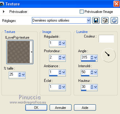 Le tutoriel a été traduit avec Corel15, mais peut également être exécuté avec les autres versions. Suivant la version utilisée, vous pouvez obtenir des résultats différents. Depuis la version X4, la fonction Image>Miroir a été remplacée par Image>Renverser horizontalement, et Image>Renverser avec Image>Renverser verticalement . Dans les versions X5 et X6, les fonctions ont été améliorées par la mise à disposition du menu Objets. Avec la nouvelle version X7, nous avons à nouveau Miroir/Retourner, mais avec nouvelles différences. Consulter, si vouz voulez, mes notes ici Certaines dénominations ont changées entre les versions de PSP. Les plus frequentes dénominations utilisées: ![]() traduction italienne ici vos versions ici Nécessaire pour réaliser le tutoriel: Matériel qui Pour le tube de la femme merci Tocha. Modules Externes. consulter, si nécessaire, ma section de filtre ici Filters Unlimited 2.0 qui Filter Factory Gallery Q - Mosaic qui Simple - 4 Way Average qui Alien Skin Eye Candy 5 Impact - Perspective Shadow qui Xero - ArtGrain qui Xero - Porcelain qui Ap [Lines] - Lines SilveRLining qui Filters Factory Gallery et Simple peuvent être utilisés seuls ou importés dans Filters Unlimited. voir comment le faire ici). Si un filtre est fourni avec cette icône, ![]() Si vous voulez utiliser vos propres couleurs, n'hésitez pas à changer le mode et l'opacité des calques Dans les plus récentes versions de PSP, vous ne trouvez pas le dégradé d'avant plan/arrière plan ou Corel_06_029. Vous pouvez utiliser le dégradé des versions antérieures. Ici le dossier Dégradés de CorelX. Placer les sélections dans le dossier Sélections. Placer la texture dans le dossier Textures. Ouvrir le masque dans PSP et le mininiser avec le reste du matériel. 1. Placer en avant plan la couleur #0000ff et en arrière plan la couleur #00ffff. ![]() Préparer en avant plan un dégradé de premier plan/arrière plan (Corel_06_029), style Halo. ![]() Ouvrir une nouvelle image transparente 900 x 550 pixels et remplir du dégradé.2. Effets>Modules Externes>Filter Factory Gallery Q - Mosaic. ![]() 3. Effets>Modules Externes>Simple - 4 Way Average. 4. Sélections>Charger/Enregistrer une sélection>Charger à partir du disque. Chercher et charger la sélection ILovePSP-Selection-1. ![]() ![]() 5. Effets>Effets 3D>Ombre portée, couleur noire #000000. ![]() Sélections>Désélectionner tout. 6. Sélections>Charger/Enregistrer une sélection>Charger à partir du disque. Chercher et charger la sélection ILovePSP-Selection-2. ![]() 7. Réglage>Flou>Flou gaussien - rayon 20. ![]() Garder sélectionné. 8. Calques>Nouveau calque raster. Placer en avant plan la couleur blanche #ffffff, et remplir le calque avec cette couleur.Garder toujours sélectionné. 9. Calques>Nouveau calque de masque>A partir d'une image. Ouvrir le menu deroulant sous la fenêtre d'origine et vous verrez la liste des images ouvertes. Sélectionner le masque Narah-mask-0201. ![]() Calques>Fusionner>Fusionner le groupe. Garder sélectionné. 10. Calques>Fusionner>Fusionner le calque de dessous. Garder toujours sélectionné. 11. Effets>Modules Externes>Xero - ArtGrain la version utilisée dans ce tutoriel est une version précédente. Si vous voulez obtenir la même fenêtre, utilisez cette version ![]() Garder toujours sélectionné. 12. Effets>Effets de textures>Texture - sélectionner la texture IlovePSP-texture. ![]() Sélections>Désélectionner tout. Sélections>Charger/Enregistrer une sélection>Charger à partir du disque. Chercher et charger la sélection ILovePSP-Selection-3. ![]() 13. Sélections>Transformer la sélection en calque. ![]() Sélections>Désélectionner tout. 14. Effets>Effets 3D>Ombre portée, couleur noire #000000. ![]() 15. Effets>Modules Externes>AP [Lines] - Lines SilverLining. ![]() 16. Effets>Modules Externes>Xero - Porcelain. ![]() 17. Ouvrir ILovePsp-Deco-1 - Édition>Copier. Revenir sur votre travail et Édition>Coller comme nouveau calque. 18. Effets>Effets d'image>Décalage. ![]() 19. Ouvrir ILovePsp-Deco-2 - Édition>Copier. Revenir sur votre travail et Édition>Coller comme nouveau calque. 20. Effets>Effets d'image>Décalage. ![]() 21. Placer le calque en mode Luminance (héritée) et réduire l'opacité à 80%. 22. Effets>Effets 3D>Ombre portée, couleur noire #000000. ![]() 23. ILovePsp-Deco-3 - Édition>Copier. Revenir sur votre travail et Édition>Coller comme nouveau calque. Réglage>Netteté>Netteté. Ne pas déplacer. 24. Ouvrir ILovePsp-Deco-4 - Édition>Copier. Revenir sur votre travail et Édition>Coller comme nouveau calque. 25. Effets>Effets d'image>Décalage. ![]() 26. Placer le calque en mode Luminance (héritée). 27. Effets>Effets 3D>Ombre portée, couleur noire #000000. ![]() 28. Ouvrir ILovePsp-Deco-5 - Édition>Copier. Revenir sur votre travail et Édition>Coller comme nouveau calque. 29. Effets>Effets d'image>Décalage. ![]() 30. Ouvrir le tube de la femme - Édition>Copier. Revenir sur votre travail et Édition>Coller comme nouveau calque. Image>Redimensionner, à votre convenance, redimensionner tous les calques décoché. Réglage>Netteté>Netteté. 31. Effets>Modules Externes>Alien Skin Eye Candy 5 Impact - Perspective Shadow. sélectionner le preset Drop Shadow Blurry et ok. ![]() 32. Image>Ajouter des bordures, 2 pixels, symétrique, couleur #0000ff. Image>Ajouter des bordures, 25 pixels, symétrique, couleur blanche #ffffff. Image>Ajouter des bordures, 2 pixels, symétrique, couleur #0000ff. 33. Si vous voulez: Image>Redimensionner, 900 pixels de largeur, redimensionner tous les calques coché. Signer votre travail et enregistrer en jpg. ![]() Si vous avez des problèmes, ou des doutes, ou vous trouvez un link modifié, ou seulement pour me dire que ce tutoriel vous a plu, vous pouvez m'écrire. 13 Août 2016 |