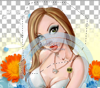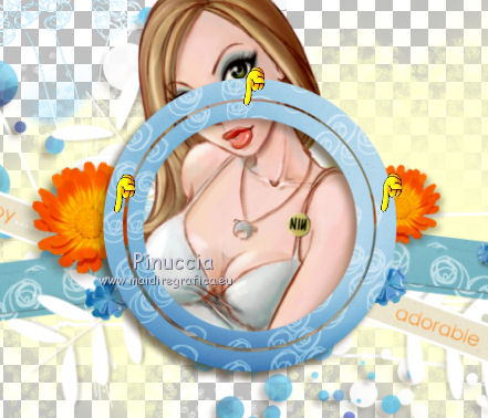 qui puoi trovare qualche risposta ai tuoi dubbi. Se l'argomento che ti interessa non è presente, ti prego di segnalarmelo. Questo tutorial è stato creato con PSP 9, ma può essere eseguito anche con le altre versioni di PSP. Per tradurlo, ho usato PSP X. Occorrente: Un tube a scelta. Gli elementi dello scrapkit di Kimladesigns di cui non conosco il link diretto alla pagina qui ![]() Apri una nuova immagine trasparente 735 x 525 pixels. Dallo scrapkit apri Element 12. Immagine>Ridimensiona, al 25%, tutti i livelli non selezionato. Modifica>Copia. Torna al tuo lavoro e vai a Modifica>Incolla come nuovo livello. Spostalo un po' più a destra.Dallo scrapkit apri Element 10. Immagine>Ridimensiona, al 15% (nel mio esempio 25%) tutti i livelli non selezionato. Modifica>Copia. Torna al tuo lavoro e vai a Modifica>Incolla come nuovo livello. Lascialo come sta. Non occorre spostarlo. Dallo scrapkit apri Element 29. Immagine>Ridimensiona, al 10% (nel mio esempio 13%), tutti i livelli non selezionato. Modifica>Copia. Torna al tuo lavoro e vai a Modifica>Incolla come nuovo livello. Immagine>Ruota per gradi - 10 gradi a sinistra (nel mio esempio 7 gradi). ![]() Livelli>Duplica. Immagine>Rifletti. Posiziona i due elementi incrociandoli al centro.![]() Dalla seconda cartella degli elementi apri Element 3. Immagine>Ridimensiona, al 20% (nel mio esempio 23%) tutti i livelli non selezionato. Modifica>Copia. Torna al tuo lavoro e vai a Modifica>Incolla come nuovo livello. Spostalo al centro.![]() Dallo scrapkit apri element28 (se preferisci questo elemento con lo sfalsa ombra, apri element6 della seconda cartella). Immagine>Ridimensiona, al 35%, tutti i livelli non selezionato. Modifica>Copia. Torna al tuo lavoro e vai a Modifica>Incolla come nuovo livello. Livelli>Duplica. Immagine>Ridimensiona, al 70%, tutti i livelli non selezionato. Immagine>Rifletti. Spostalo a destra.Dallo scrapkit apri element20. Immagine>Ridimensiona, al 5% (nel mio esempio 8%), tutti i livelli non selezionato. Modifica>Copia. Torna al tuo lavoro e vai a Modifica>Incolla come nuovo livello. Livelli>Duplica, quante volte vuoi e posiziona gli elementi come preferisci.(nel mio esempio l'ho duplicato soltanto una volta). ![]() Dalla seconda cartella degli elementi apri element4. Immagine>Ridimensiona, al 10% (nel mio esempio 13%), tutti i livelli non selezionato. Modifica>Copia. Torna al tuo lavoro e vai a Modifica>Incolla come nuovo livello. Immagine>Ruota per gradi - 20 gradi a destra. Immagine>Rifletti. Spostalo sotto il fiore.Livelli>Duplica. Immagine>Capovolti e spostalo in basso.Livelli>Duplica, e spostalo a destra. Premi il tasto D per attivare lo strumento Deformazione ![]() e ruotalo come ti sembra meglio (vedi il mio esempio per orientarti). Dallo scrapkit apri Element 24. Immagine>Ridimensiona, al 15%, tutti i livelli non selezionato. Modifica>Copia. Torna al tuo lavoro e vai a Modifica>Incolla come nuovo livello. Immagine>Ruota per gradi - 20 gradi a destra. Spostalo sotto il fiore (più tardi assicurati che la parola sia visibile).Dallo scrapkit apri Element 32. Immagine>Ridimensiona, al 15%, tutti i livelli non selezionato. Modifica>Copia. Torna al tuo lavoro e vai a Modifica>Incolla come nuovo livello. Immagine>Ruota per gradi - 20 gradi a destra. Sposta questo elemento a destra, vedi il mio esempio per orientarti.Apri il tuo tube e vai a Modifica>Copia. Torna al tuo lavoro e vai a Modifica>Incolla come nuovo livello. Immagine>Ridimensiona, se e quanto necessario. Effetti>Effetti 3D>Sfalsa ombra, con settaggi a tua scelta. Il prossimo passaggio dipende dal tube che hai scelto. Nel mio esempio: Attiva il livello della cornice. Livelli>Duplica. Livelli>Disponi>Porta in alto. Attiva lo strumento Gomma ![]() e cancella la parte di cornice che copre quello che vuoi rimanga visibile del tube. ![]() Un'altra soluzione: Attiva lo strumento Selezione a mano libera , da punto a punto,e seleziona la parte del tube che vuoi rimanga visibile al di fuori della cornice. se necessario, per vedere meglio, abbassa l'opacità della cornice (non dimenticare poi di riportarla a 100). ![]() Selezione>Innalza selezione a livello. Selezione>Deseleziona. Livelli>Disponi>Porta in alto. Assicurati che tutti gli elementi e i livelli siano correttamente posizionati. Quanto sei soddisfatto: Livelli>Unisci>Unisci visibile. Effetti>Effetti 3D>Sfalsa ombra, con il colore #1f70a5. ![]() Aggiungi il tuo nome e/o il tuo watermark, senza dimenticare eventuali copyright delle immagini usate. ![]() Se hai problemi o dubbi, o trovi un link non funzionante, o anche soltanto per un saluto, scrivimi 18 Settembre 2010 |