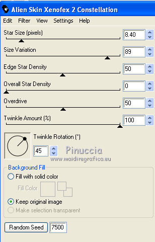 Ripeti l'Effetto Constellation con gli stessi settaggi, ma cliccando una volta su Random Seed.