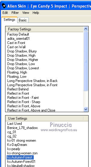 .Placer les presets ks-autumn-forest e ks-autumn-forest01 dans le dossier du filtre Alien Skin Eye Candy 5 Impact>Settings>Shadow.