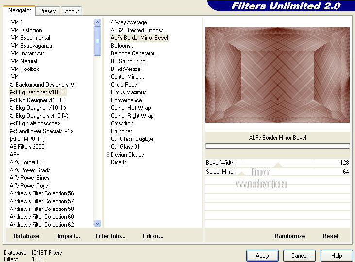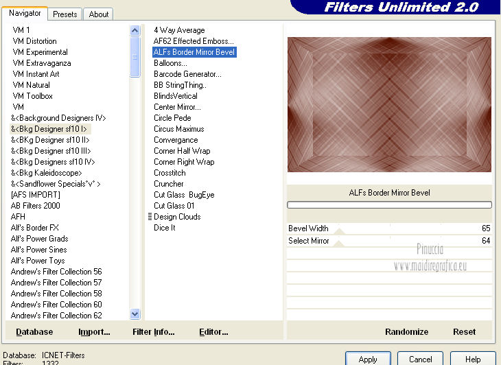 Effets>Modules Externes>Filters Unlimited 2.0 - &<Bkg Designer sf10I> - ALFs Border Mirror Bevel.