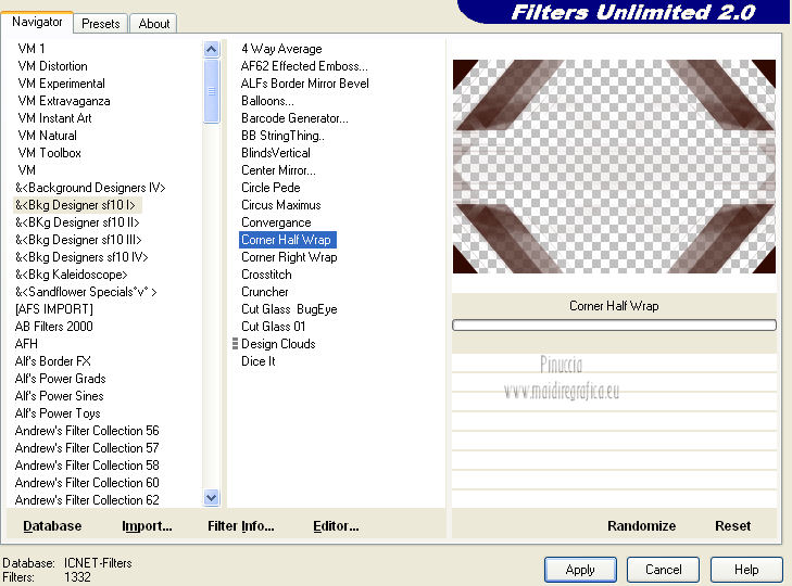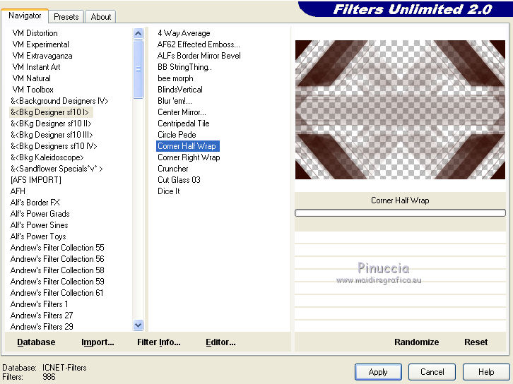 Effets>Modules Externes>Filters Unlimited 2.0 - &<Bkg Designer sf10I> - Corner Half Wrap.