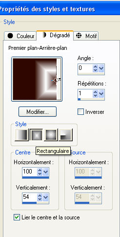 Préparer un dégradé d'avant plan/arrière plan, style Réctangulaire.