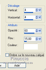Effets>Effets 3D>Ombre portée, couleur blanche.