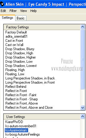 Placer le preset ks-Ayariwoman dans le dossier du filtre Alien Skin Eye Candy 5 Impact>Settings>Shadow.