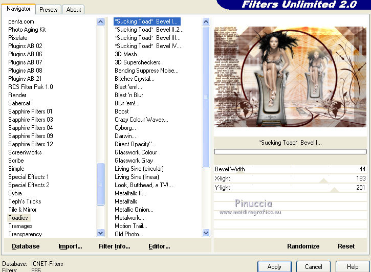 Effets>Modules Externes>Filters Unlimited 2.0 - Toadies - Sucking Toad Bevel I.