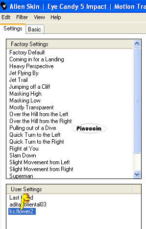 15. Effetti>Plugins>Alien Skin Eye Candy 5 Impact - Motion Trail.