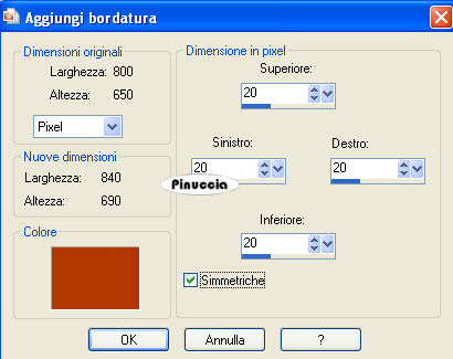 Immagine>Aggiungi bordatura, 20 pixels, simmetriche, con un colore rosso.