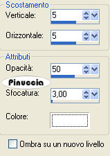 Effetti>Effetti 3D>Sfalsa ombra, con i seguenti settaggi, colore bianco: