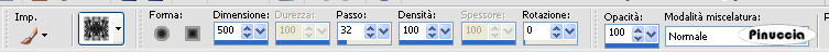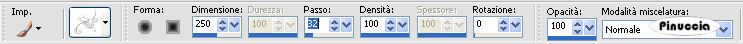 qui puoi trovare qualche risposta ai tuoi dubbi. Se l'argomento che ti interessa non è presente, ti prego di segnalarmelo. Questo tutorial è stato scritto con PSP X2, ma può essere eseguito anche con le altre versioni di PSP. Per tradurlo, ho usato PSP X. Occorrente: Materiale qui Il tube Ametista_Kerguehenne_castle_10 è di Ametista. Il resto del materiale è di Kitty. Rispetta il lavoro degli autori e mantieni i tubes al loro stato originale. Filtri: Greg's Factory Output vol. II qui Alien Skin Eye Candy 5 Impact qui Graphics Plus qui ![]() Metti la selezione nella cartella Selezioni. Metti i pennelli ks.abstract - krulstaf1 e krulstaf 2 nella cartella dei Pennelli. Attenzioni i tre pennelli sono composti da due files che non devono essere separati. Vedi gli appunti sui Pennelli qui Importa i preset ks.vorm1 e ks.worm2 nel filtro, quando ti sarà richiesto. Vedi scheda Eye Candy 5 come importare un preset in questi filtri. Apri il font e minimizzalo nella tua area di lavoro. Lo troverai nella lista dei font disponibili quando ti servirà. 1. Apri una nuova immagine bianca 900 x 550 pixels. ![]() Imposta il colore di primo piano con #485834. Livelli>Nuovo livello raster. 2. Attiva lo strumento Pennello ![]() cerca e seleziona il pennello ks.abstract: ![]() e applicalo al centro dell'immagine cliccando una volta con il tasto sinistro del mouse, per usare il colore di primo piano. Attiva lo strumento Puntatore ![]() deformazione se stai usando PSP 9,oppure premi sulla tastiera il tasto D, e "tira" i nodi centrali dello strumento per ingrandire il pennello per tutta la dimensione dell'immagine. ![]() 3. Effetti>Plugins>Greg's Factory Output vol.II - Sine blobs IV: ![]() Livelli>Nuovo livello raster. Selezione>Carica/Salva selezione>Carica selezione da disco. Cerca e carica la selezione ks.vorm: ![]() Riempi la selezione con il colore di primo piano #485834.4. Effetti>Plugins>Greg's Factory Output vol.II - Sine blobs IV, con i settaggi precedenti. ![]() Selezione>Deseleziona. Sposta l'immagine come nell'esempio:![]() 5. Effetti>Plugins>Alien Skin Eye Candy 5 Impact - Extrude: seleziona il preset ks.vorm1 e ok. ![]() Cambia la modalità di miscelatura di questo livello in Indebolisci. ![]() Livelli>Duplica. Immagine>Rifletti. Livelli>unisci>Unisci visibile. 6. Livelli>Duplica. Immagine>Ridimensiona, al 70%, tutti i livelli non selezionato. 7. Effetti>effetti 3D>Sfalsa ombra: ![]() Ripeti l'Effetto Sfalsa ombra, cambiando verticale e orizzontale con -10. 8. Apri il tube Yellow Son e vai a Modifica>Copia. Torna al tuo lavoro e vai a Modifica>Incolla come nuovo livello. Immagine>Ridimensiona, all'80%, tutti i livelli non selezionato. Spostalo un po' più in alto.Tasto D sulla tastiera per attivare lo strumento Puntatore, e "tira" un po' il tube verso il basso. ![]() 9. Apri il tube Ametista e vai a Modifica>Copia. Torna al tuo lavoro e vai a Modifica>Incolla come nuovo livello. Immagine>Ridimensiona, all'80%, tutti i livelli non selezionato. Spostalo al centro.Regola>Tonalità e saturazione>Viraggio: ![]() 10. Livelli>Unisci>Unisci giù. Effetti>Effetti di bordo>Aumenta. Imposta il colore di primo piano con #111808. 11. Livelli>Nuovo livello raster. Attiva lo strumento Pennello ![]() cerca e seleziona il pennello krulstaf2, e applicalo a sinistra cliccando due volte con il tasto sinistro del mouse per usare il colore di primo piano. ![]() Livelli>duplica. Immagine>Rifletti. Livelli>Unisci>Unisci giù. 12. Effetti>Plugins>Alien Skin Eye Candy 5 Impact - Extrude, seleziona il preset ks-vorm2 e ok. ![]() Cambia la modalità di miscelatura di questo livello in Luminanza (esistente). ![]() Effetti>effetti di bordo>Aumenta. 13. Mantieni il colore di primo piano con #111808. Livelli>Nuovo livello raster. Attiva nuovamente lo strumento Pennello ![]() cerca e seleziona il pennello ks.krulstaf1: ![]() e applicalo cliccando due volte con il tasto sinistro del mouse per usare il colore di primo piano. ![]() Immagine>Ruota per gradi - 90 gradi a sinistra: ![]() 14. Sposta il pennello in alto a destra.![]() Livelli>Duplica. Immagine>Rifletti. Livelli>Unisci>Unisci giù. Effetti>Effetti 3D>Smusso a incasso. ![]() Livelli>Duplica. Immagine>Capovolgi. Effetti>Effetti di immagine>Scostamento: ![]() Livelli>Unisci>Unisci giù. 16. Apri il tube Union Black e vai a Modifica>Copia. Torna al tuo lavoro e vai a Modifica>Incolla come nuovo livello. Immagine>Ridimensiona, al 60%, tutti i livelli non selezionato. Spostalo a destra.Effetti>Effetti 3D>Sfalsa ombra. ![]() 17. Chiudi il colore di primo piano e imposta il colore di sfondo con il nero. Attiva lo strumento Testo ,seleziona il font Vivaldi, con i seguenti settaggi: ![]() Scrivi "Carpe diem". Livelli>Converti in livello raster. 18. Livelli>Duplica. Immagine>Capovolgi. Sposta il testo sotto il precedente.![]() Livelli>Unisci>Unisci tutto. 19. Effetti>Plugins>Graphics Plus - Border Fade: ![]() Immagine>Aggiungi bordatura, 1 pixel, simmetriche, con il colore nero. 20. Aggiungi il tuo nome e/o il tuo watermark su un nuovo livello. Livelli>Unisci>Unisci tutto e salva in formato jpg.