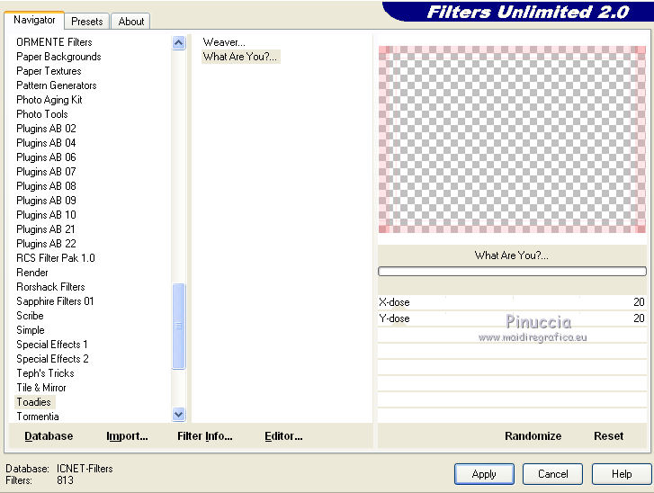 Effets>Modules Externes>Filters Unlimited 2.0 - Toadies - What are you.