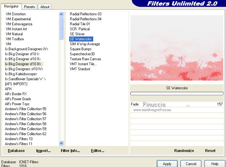 Effets>Modules Externes>Filters Unlimited - &<Background Designersf10III> - SE Watercolor.