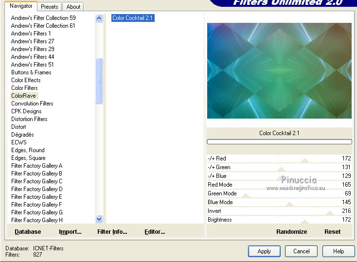 5. Effets>Modules Externes>Filters Unlimited 2.0 - ColorRave - Color Cocktail 2.1.