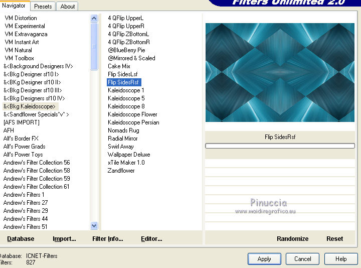4. Effets>Modules Externes>Filters Unlimited 2.0 - &<Bkg Kaleidoscope> - Flip SideRsf