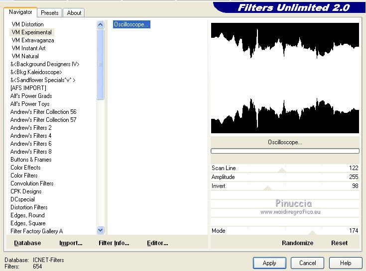 Effets>Modules Externes>Filters Unlimited - VM Experimental - Oscilloscope.