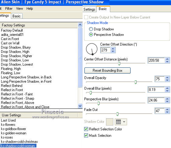 21. Effets>Modules Externes>Alien Skin Eye Candy 5 Impact - Perspective Shadow.
