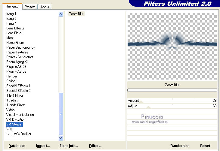 10. Effets>Modules Externes>Filters Unlimited - VM Tool Box - Zoom blur.