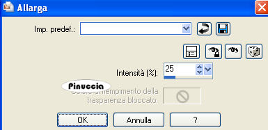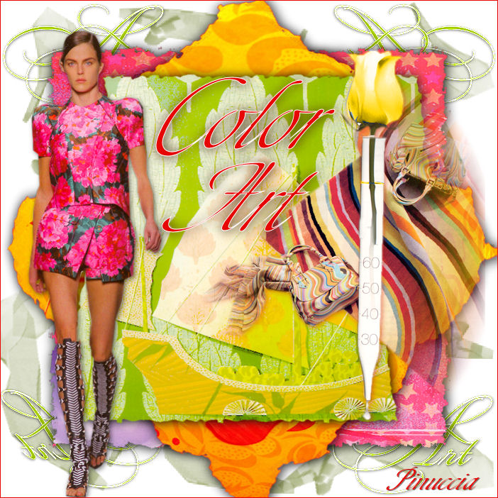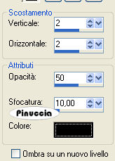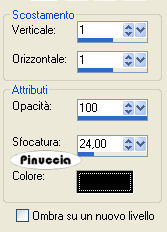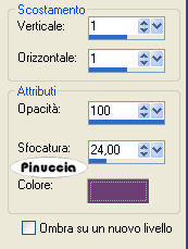 qui puoi trovare qualche risposta ai tuoi dubbi. Se l'argomento che ti interessa non è presente, ti prego di segnalarmelo. Questo tutorial è stato scritto con PSP X2, ma può essere eseguito anche con le altre versioni di PSP. Per tradurlo, ho usato PSP X. Occorrente: Materiale qui Rispetta il lavoro degli autori e mantieni i tubes al loro stato originale. ![]() Apri il font e minimizzalo nella tua area di lavoro. Lo troverai nella lista dei font disponibili quando ti servirà. 1. Apri una nuova immagine BIANCA 700 x 700 pixels, Apri il template Shoes e vai a Modifica>Copia. Torna al tuo lavoro e vai a Modifica>Incolla come nuovo livello. Regola>Messa a fuoco>Metti a fuoco. 2. Apri Papier_ks1 e vai a Modifica>Copia. Torna al tuo lavoro e vai a Modifica>Incolla come nuovo livello. Effetti>Effetti di distorsione>Allarga: ![]() Effetti>Effetti 3D>Sfalsa ombra: ![]() 3. Apri Papier ks_2 e vai a Modifica>Copia. Torna al tuo lavoro e vai a Modifica>Incolla come nuovo livello. Immagine>Ruota per gradi - 45 gradi a destra: ![]() Effetti>Effetti 3D>Sfalsa ombra, come al punto 2. Effetti>Effetti di distorsione>Allarga: ![]() 4. Apri Papier_ks3 e vai a Modifica>Copia. Torna al tuo lavoro e vai a Modifica>Incolla come nuovo livello. Immagine>Rifletti. Effetti>Effetti di distorsione>Allarga: ![]() Effetti>Effetti 3D>sfalsa ombra, come al punto 2. 5. Apri il tube Tas e vai a Modifica>Copia. Torna al tuo lavoro e vai a Modifica>Incolla come nuovo livello. Immagine>Ridimensiona, all'80%, tutti i livelli non selezionato. Immagine>Ruota per gradi - 90 gradi a sinistra: ![]() Sposta il tube in basso a sinistra.![]() Effetti>Effetti 3D>sfalsa ombra: ![]() 6. Apri il tube Lepel e vai a Modifica>Copia. Torna al tuo lavoro e vai a Modifica>Incolla come nuovo livello. Spostalo sulla terza carta, a destra.Effetti>Effetti 3D>sfalsa ombra, come al punto 5. Apri il tube Vork e vai a Modifica>Copia. Torna al tuo lavoro e vai a Modifica>Incolla come nuovo livello. Posiziona il tube a sinistra del cucchiaio.Effetti>Effetti 3D>Sfalsa ombra, come al punto 5. 7. Apri il tube Servies e vai a Modifica>Copia. Torna al tuo lavoro e vai a Modifica>Incolla come nuovo livello. Spostalo a destra, contro il bordo.Effetti>Effetti 3D>sfalsa ombra, con i seguenti settaggi, colore #6c4073. ![]() 8. Apri il tube Color Lady e vai a Modifica>Copia. Torna al tuo lavoro e vai a Modifica>Incolla come nuovo livello. Immagine>Rifletti. Effetti>Effetti 3D>Sfalsa ombra, come al punto 5, colore nero. ![]() Nella paletta dei livelli trascina questo livello sotto il livello Raster 5 (la borsa). ![]() Livelli>Unisci>Unisci tutto. 9. Imposta il colore di primo piano con il bianco, e il colore di sfondo con #6c4073. Attiva lo strumento Testo ![]() ![]() Scrivi la parola Color Livelli>Converti in livello raster. Effetti>Effetti 3D>sfalsa ombra, con i seguenti settaggi, colore #6c4073. ![]() Sposta il testo in alto a destra.Scrivi la parola Art. Livelli>Converti in livello raster. Effetti>Effetti 3D>Sfalsa ombra, con i settaggi precedenti. Sposta il testo vicino alla parola precedente.10. Aggiungi il tuo nome e/o il tuo watermark su un nuovo livello. Immagine>Aggiungi bordatura, 1 pixel, simmetriche, con il colore #57318d. Salva in formato jpg. Variante con parte del materiale fornito nello zip. ![]()