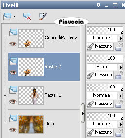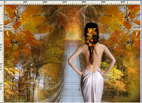 qui puoi trovare qualche risposta ai tuoi dubbi. Se l'argomento che ti interessa non è presente, ti prego di segnalarmelo. Questo tutorial è stato scritto con PSP X2 e tradotto con PSPX, ma può essere eseguito anche con le altre versioni di PSP. Dalla versione X4, il comando Immagine>Rifletti è stato sostituito con Immagine>Capovolgi in orizzontale, e il comando Immagine>Capovolgi con Immagine>Capovolgi in verticale. Nelle versioni X5 e X6, le funzioni sono state migliorate rendendo disponibile il menu Oggetti. Con la nuova versione X7, sono tornati Rifletti>Capovolgi, ma con nuove varianti. Vedi la scheda sull'argomento qui traduzione francese qui Le vostre versioni quiOccorrente: Materiale qui Filtri: in caso di dubbi, ricorda di consultare la mia sezione filtri qui FM Tile Tools - Blend Emboss qui Adjust - Variations qui Sinedots II qui ![]() non esitare a cambiare modalità di miscelatura e opacità secondo i colori utilizzati. Metti la maschera nella cartella Maschere. Apri il resto del materiale in PSP. 1. Apri una nuova immagine trasparente 700 x 500 pixels. ![]() 2. Imposta il colore di primo piano con #402404. Riempi l'immagine trasparente con il colore di primo piano #402404.Apri il tube Brug KS, e vai a Modifica>Copia. Torna al tuo lavoro e vai a Modifica>Incolla come nuovo livello. Sposta il tube al centro e un po' più in basso.Cambia la modalità di miscelatura di questo livello in Esclusione. ![]() 2. Apri il tube Bomen-184-8478 e vai a Modifica>Copia. Torna al tuo lavoro e vai a Modifica>Incolla come nuovo livello. Immagine>Rifletti. Sposta il tube in basso a destra.Regola>Rimozione disturbo in un passaggio. 3. Apri il tube Bomen-184-8479 e vai a Modifica>Copia. Torna al tuo lavoro e vai a Modifica>Incolla come nuovo livello. Immagine>Rifletti. Sposta il tube in basso a sinistra.Regola>Rimozione disturbo in un passaggio. 4. Apri il tube Forest e vai a Modifica>Copia. Torna al tuo lavoro e vai a Modifica>Incolla come nuovo livello. Sposta il tube in alto al centro.![]() 5. Apri il tube Beukebladeren e vai a Modifica>Copia. Torna al tuo lavoro e vai a Modifica>Incolla come nuovo livello. Sposta il tube in alto a destra.![]() Livelli>Duplica. Immagine>Rifletti. Livelli>Unisci>Unisci giù. 6. Effetti>Plugins>FM Tile Tools - Blend Emboss, con i settaggi standard. ![]() Effetti>Plugins>Adjust - Variations: clicca una volta su Original, per annullare eventuali settaggi precedenti memorizzati dal filtro, una volta su More Yellow, una volta su More Red e una volta su Darker. ![]() 7. Livelli>Nuovo livello raster. Effetti>Plugins>Dragonfly - Sinedots II: ![]() Sposta questo livello un po' più a destra.![]() se hai problemi con il filtro, nel materiale ho aggiunto il livello "sinedots", da copiare/incollare come nuovo livello. Livelli>Unisci>Unisci visibile. 8. Apri il tube Autumn Hanna, e vai a Modifica>Copia. Torna al tuo lavoro e vai a Modifica>Incolla come nuovo livello. Immagine>ridimensiona, all'80%, tutti i livelli non selezionato. Sposta il tube a destra.![]() Effetti>Effetti 3D>Sfalsa ombra, colore nero ![]() 9. Apri il tube Paddestoel e vai a Modifica>Copia. Torna al tuo lavoro e vai a Modifica>Incolla come nuovo livello. Immagine>Ridimensiona, 1 volta al 50%, e una volta all'80%, tutti i livelli non selezionato. Sposta il tube in basso, a sinistra.Livelli>Duplica. Attiva il livello inferiore del tube (Raster 2). Regola>Sfocatura>Sfocatura da movimento: ![]() Cambia la modalità di miscelatura di questo livello in Filtra. ![]() Attiva il livello superiore (copia di Raster 2). Effetti>Effetti 3D>Sfalsa ombra, come al punto 8. Livelli>Unisci>Unisci tutto. Modifica>Copia. 10. Apri una nuova immagine trasparente 800 x 600 pixels. ![]() Imposta il colore di primo piano con #8f3501 e il colore di sfondo con #dfc14f. ![]() Riempi l'immagine trasparente con il colore #8f3501.Livelli>Nuovo livello raster. Riempi con il colore #dfc14f.11. Livelli>Carica/Salva maschera>Carica maschera da disco. Cerca e carica la maschera Sqfloral: ![]() Livelli>Unisci>Unisci gruppo. Attiva lo strumento Bacchetta magica ![]() ![]() Clicca al centro della cornice per selezionarla. Modifica>Incolla nella selezione. Selezione>Deseleziona. 12. Aggiungi il tuo nome e/o il tuo watermark su un nuovo livello. Livelli>Unisci>Unisci tutto e salva in formato jpg. Versione con tube di Tine ![]() ![]() Se hai problemi o dubbi, o trovi un link non funzionante, o anche soltanto per un saluto, scrivimi 5 Ottobre 2008 |
