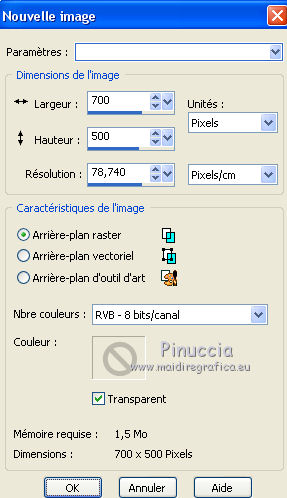 1. Ouvrir une nouvelle image transparente 700 x 500 pixels.
