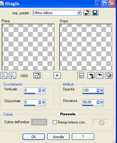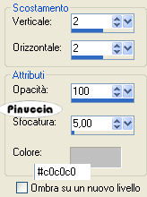 3. Effetti>Effetti 3D>sfalsa ombra, con i seguenti settaggi, colore #c0c0c0.