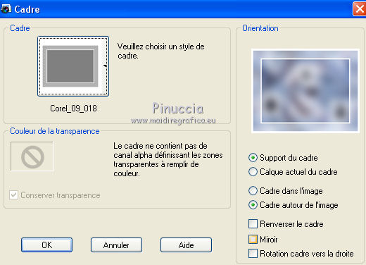 Image>Cadre - sélectionner le cadre Corel_09_018 ou Transparent01