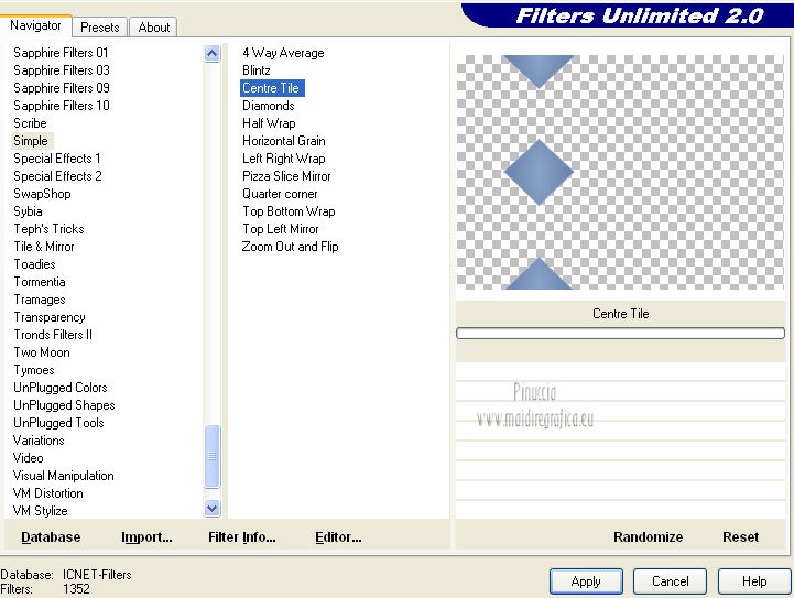 Effets>Modules Externes>Filters Unlimited 2.0 - Simple - Centre Tile.