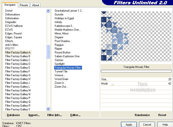 7. Effets>Modules Externes>Filters Unlimited 2.0 - Filter Factory Gallery A - Triangular Mosaic Filter, par défaut