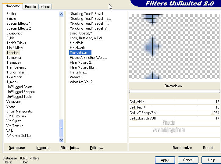 9. Effets>Modules Externes>Filters Unlimited 2.0 - Toadies - Ommadawn, par défaut.