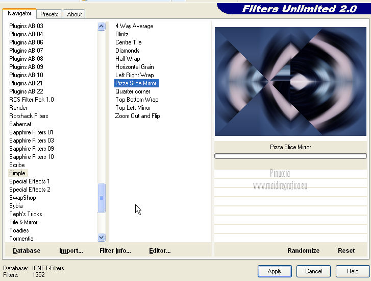 Effets>Modules Externes>Filters Unlimited 2.0 - Simple - Pizza Slice Mirror.