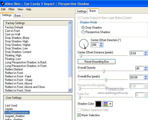 Effets>Modules Externes>Alien Skin Eye Candy 5 Impact - Perspective Shadow.