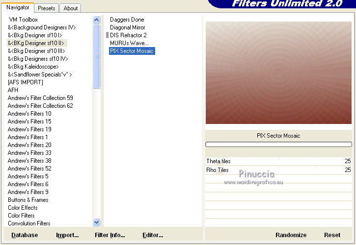 Effets>Modules Externes>Filters Unlimited 2.0 - BKg Designer sf10II - PIX Sector Mosaic.