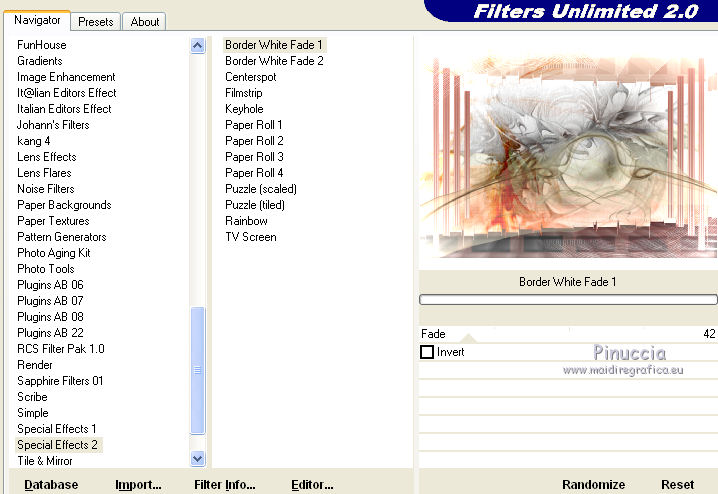 18. Effets>Modules Externes>Filters Unlimited 2.0 - Special Effect 2 - Border White Fade 1.
