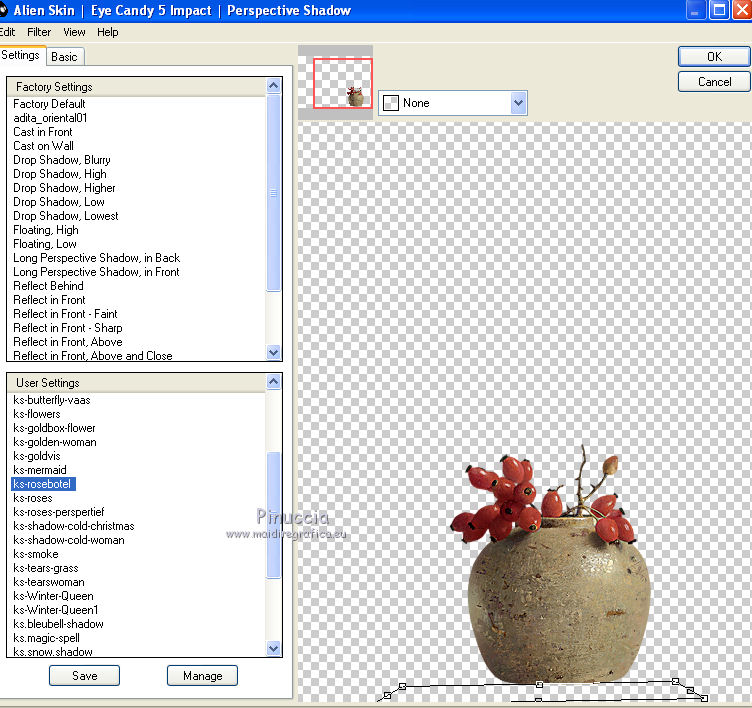 25. Effets>Modules Externes>Alien Skin eye Candy 5 Impact - Perspective Shadow.