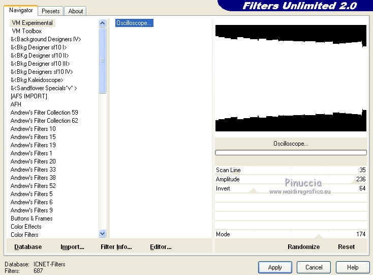 Effets>Modules Externes>Filters Unlimited 2.0 - VM Experimental - Oscilloscope...