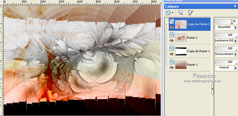 Placer le calque en mode Assombrir et réduire l'opacité à 76%.
