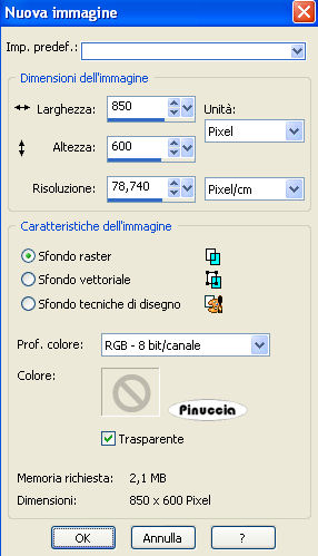 1. Apri una nuova immagine trasparente 850 x 600 pixels.