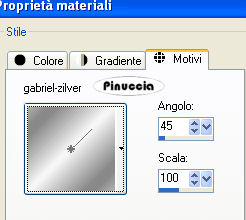 Passa il colore di primo piano a Motivi e seleziona il motivo Gabriel Zilver, con i seguenti settaggi: