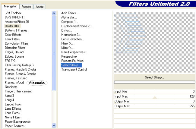 Effetti>Plugins>Filters Unlimited - Balder Olrik - Select Sharp: