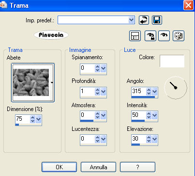 Metti la trama Corel_15_031 nella cartella Trame. E' una trama standard in PSPX2: è la corrispondente trama "Abete".