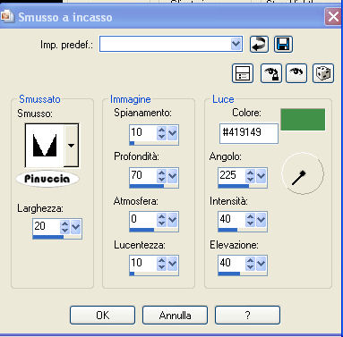 Effetti>Effetti 3D>Smusso a incasso, con il colore #419149.