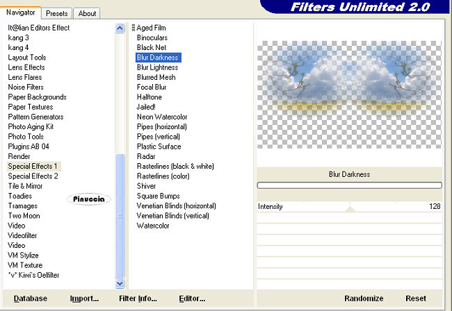 4. Effetti>Plugins>Filters Unlimited - Special Effect - Blur Darkness: