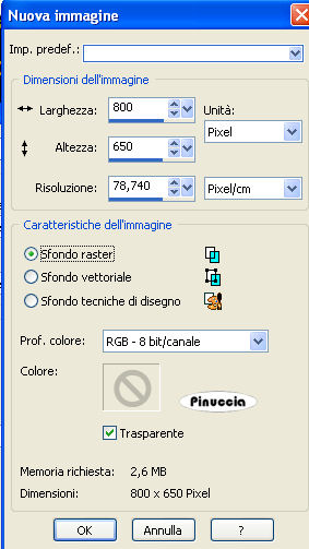 1. Apri una nuova immagine trasparente 800 x 650 pixels.